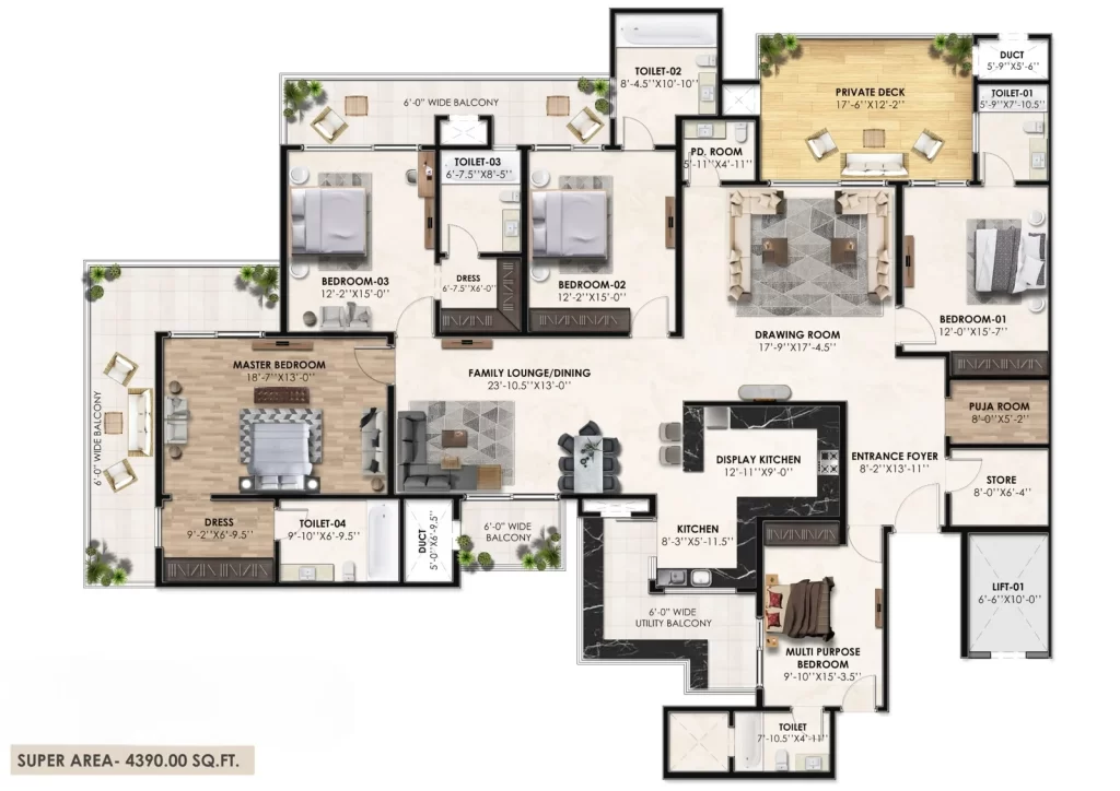 4 BHK FlatsSuper Area 4390 sq. ft.WhatsApp for Latest Price List
