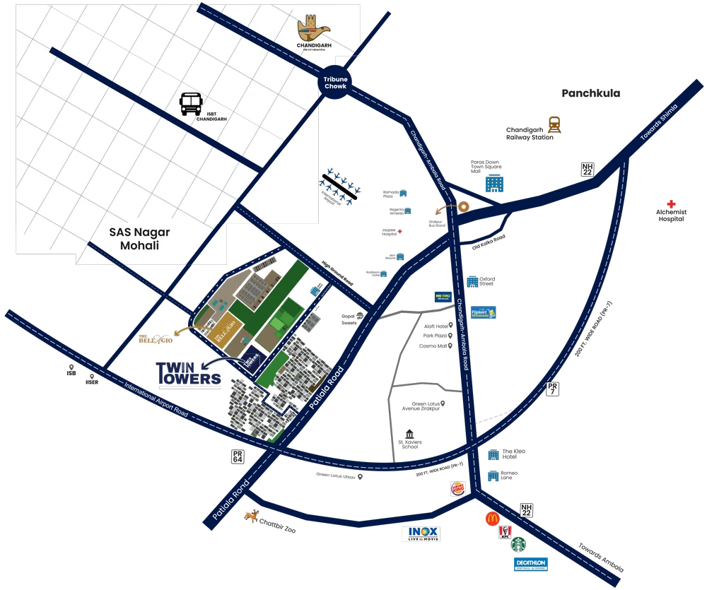 Twin Towers Zirakpur Location Map